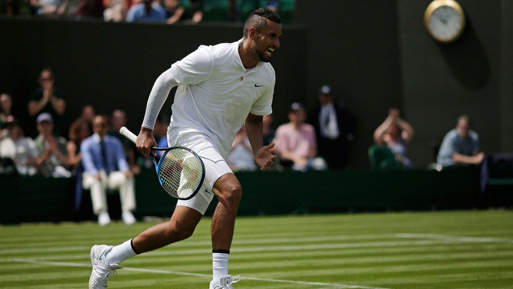 Hier auf dem heiligen Rasen hat der Spanier „nur“ zweimal gewonnen (in Paris auf Sand hat er 12mal triumphiert) und generell wirkt die Spielfläche, wenn er spielt, in Paris immer deutlich größer als in London. Auf Sand beherrscht er Raum und Zeit ohne Einschränkung, wogegen das schnellere Spiel auf Rasen mitsamt der größeren Unberechenbarkeit ihm Schwierigkeiten bereitet. An dieser Stelle versteht Nadal, der für gewöhnlich einer der größten Sportsmänner in diesem Zirkus ist, dass er dieses Spiel nicht allein auf dem Platz gewinnen wird. Er muss auch die Zeit außerhalb des Spiels beherrschen. Hier gewinnt Nadal dieses Spiel. Er beginnt zu schreien, das Publikum zu animieren, zu sprechen, zu springen. Wie angestachelt wirkt er, ob der Provokationen seines Gegenübers. Er rettet sich aus der Situation und landet in einem Tie-Break. Einen solchen hat er in sechs Duellen mit Kyrgios noch nie für sich entschieden. Aber inzwischen ist Kyrgios verhältnismäßig ruhig geworden. Er zeigt sich beeindruckt, denn Nadal ist stärker geworden.